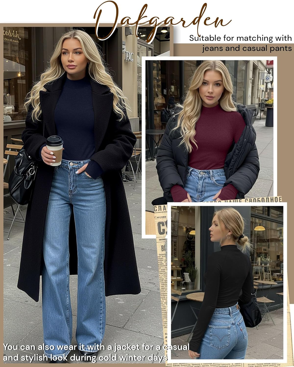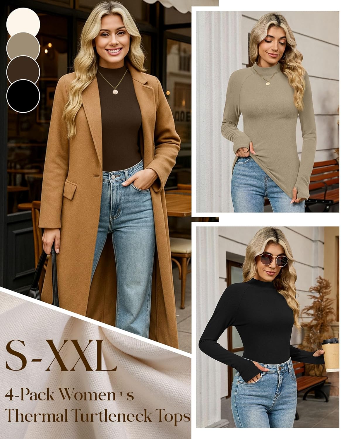 Features: Washing max 104°F, normal process, don't tumble dry, don't bleach. Hand-washed or machine-washed and hung up to air dry Please refer to our size chart in product description/picture before ordering to ensure accurate fitting Specifications: Material: 92% polyester, 8% spandex Package includes: 4 x Women's mock turtleneck tops Notes: Manual measurement, please allow slight errors on size. The color may exist a slight difference due to different screen displays