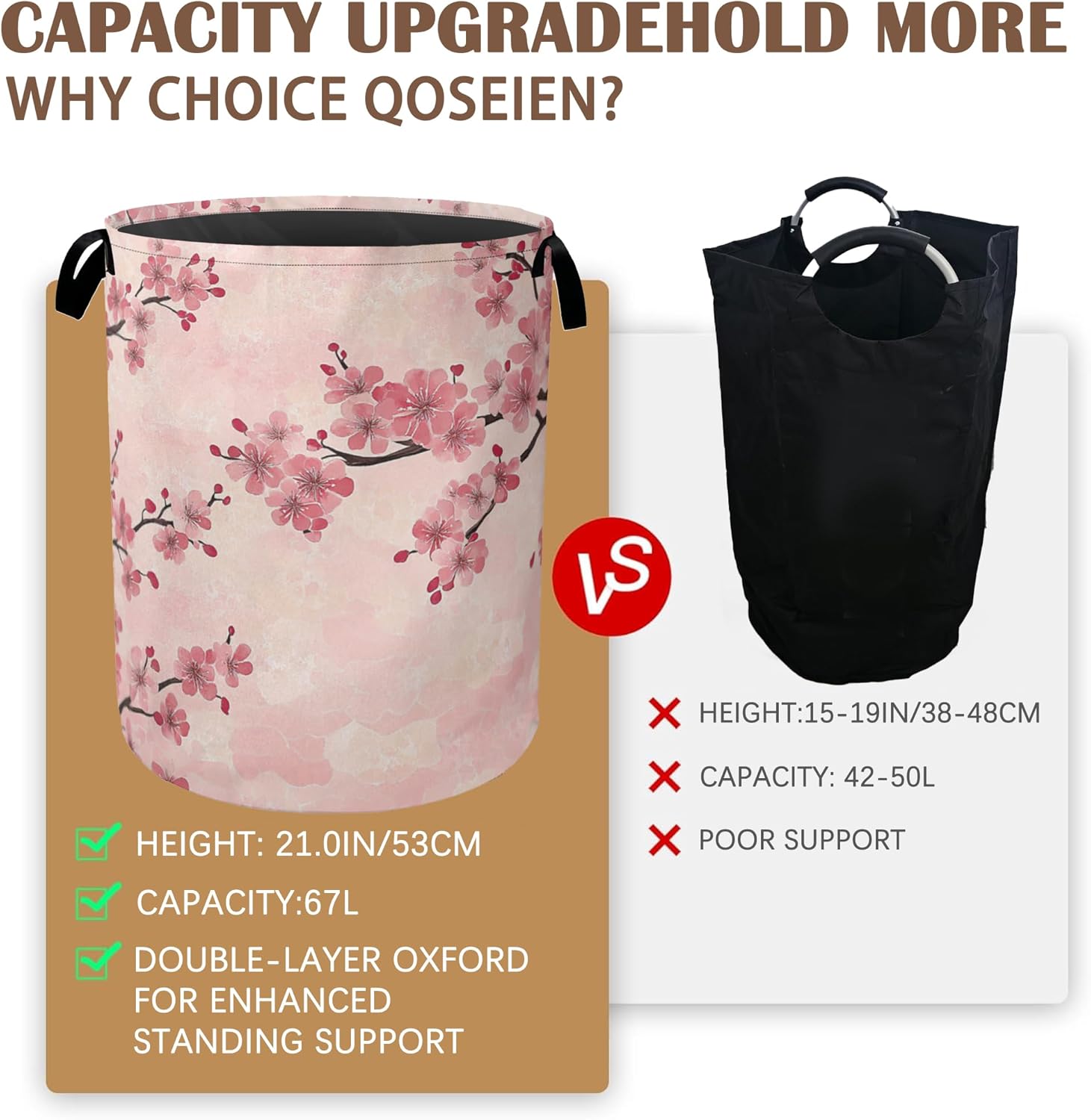 Material:Made of Oxford fabric with reinforced stitching,this collapsible laundry hamper is both sturdy and lightweight. The waterproof inner coating makes it easy to clean,while the elegant trim detail adds a touch of style